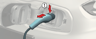 To prevent charging cable theft, the charging connector cannot be disconnected from the inlet when the doors are locked or the charging connector is in the LOCK mode. Unlock all doors to disconnect the charging connector from the inlet.