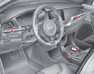 The ambient lights are installed in the front crash pad, front doors, and the top/bottom of the center console.