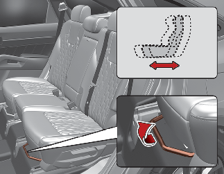 After getting in or out, slide the 2nd row seat to the farthest backward position and pull the seatback firmly backward until it clicks into place. Make sure that the seat is locked in place.