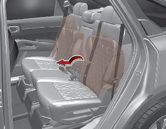 When you fold the rear seatback, insert the buckle between the rear seatback and cushion. Doing so can prevent the buckle from being damaged by the rear seatback.