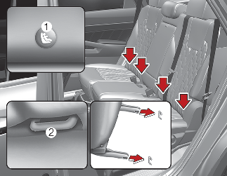 LATCH anchors have been provided in the left and right outboard rear seating positions. Their locations are shown in the illustration. There are no LATCH anchors provided for the center rear seating position.