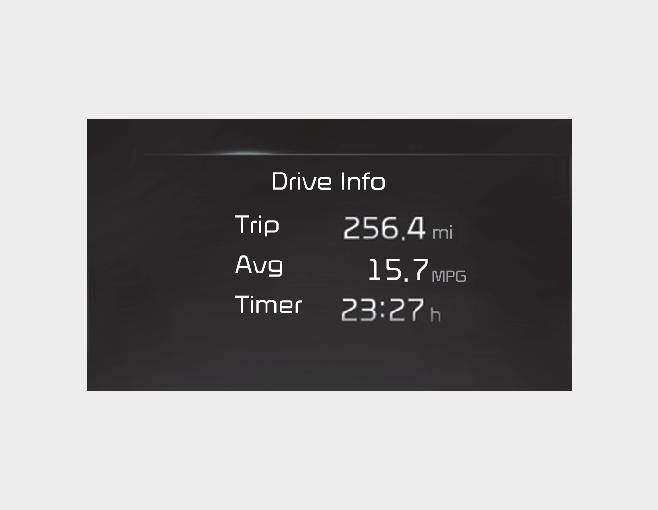 This display shows the trip distance (1), the average fuel efficiency (2), and the total driving time (3) information once per one ignition cycle.