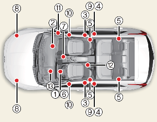 Os módulos dos airbags estão localizados tanto no centro do volante como no painel do lado do passageiro por cima do porta-luvas. Se o módulo SRSCM detetar um impacto suficientemente forte na dianteira do veículo, ativará automaticamente os airbags dianteiros.