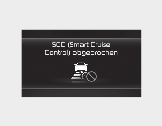 Wenn die intelligente Tempomatsteuerung vorübergehend deaktiviert ist, erscheint die Warnmeldung „Smart Cruise Control canceled“ (Intelligente Tempomatsteuerung deaktiviert) auf dem Kombiinstrument und es wird ein Warnton für den Fahrer ausgegeben.