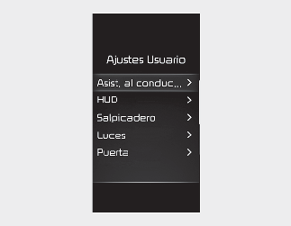 Por motivos de seguridad, cambie los Ajustes Usuario después de aparcar el vehículo, accionar el freno de estacionamiento y colocar la palanca de cambios en la posición P (estacionamiento).
