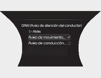 Si selecciona "Leading Vehicle Departure Alert" (Aviso de movimiento del vehículo de delante), la función informará al conductor cuando el vehículo que esté delante inicie la marcha desde una parada.