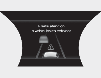En esta situación, el mensaje de advertencia "Esté atento a vehículos a su alrededor" aparecerá en el tablero y se emitirá un sonido de advertencia para avisar al conductor de las condiciones de la carretera por delante.