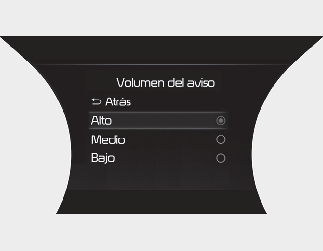 Si modifica el volumen del aviso, es posible que cambie el volumen del aviso de otra función de asistencia al conductor.