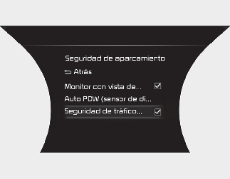 El ajuste de tiempo de aviso y volumen del aviso se aplica a todas las funciones del aviso de colisión con tráfico cruzado trasero.