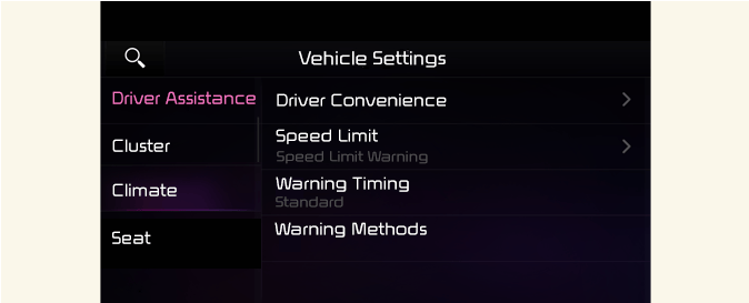 Настройки за помощ за водача (инфотейнмънт система) (Ако е налично)