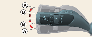 Натиснете лостчето за мигачите нагоре или надолу (В).