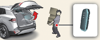 Не влизайте в обхвата на засичане, ако не желаете багажникът да се отвори. Ако неволно сте влезли в зоната за разпознаване и аварийните светлини и звуковият сигнал започнат да работят, излезте от зоната заедно с ключа за интелигентно управление. Багажникът ще остане затворен.