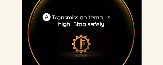 A: Transmission temp. is high! (Температурата на трансмисията е висока!) Stop safely (Спрете безопасно)