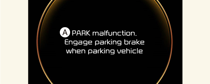A: PARK malfunction (Неизправност при паркиране). Engage parking brake when parking vehicle (Включете паркинг спирачката, когато паркирате автомобила)