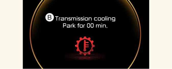 A: Transmission Hot! (Трансмисията е гореща!) Park with engine on (Паркирайте с включен двигател) B: Охлаждане на трансмисията Паркиране за 00 мин. C: Транс охлаждане. Resume driving (Възобновете шофирането)