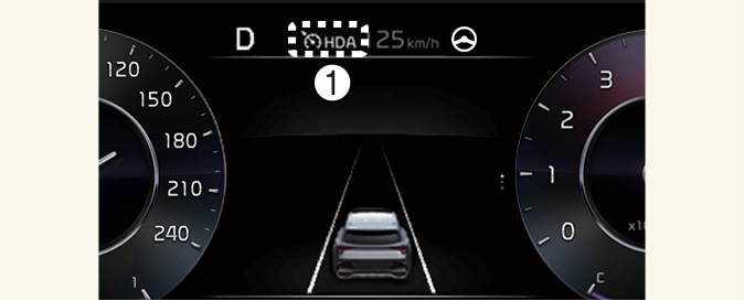 Показва се индикаторът за асистента за шофиране по магистрала, дали отпред има превозно средство и избраното ниво на дистанция.