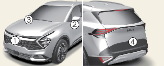 2, 3: SVM странична камера (под външното странично огледало)