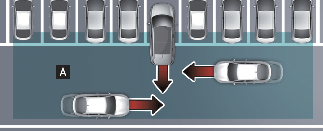 [A]: Работен обхват на Системата за сигнализация при пресичащи отзад автомобили