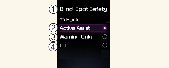 Ако промените настройката от Изключено на Активен асистент или Само предупреждение, предупредителната лампа на външното огледало ще примигва в продължение на три секунди.