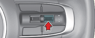 Ако натиснете превключвателя „+“ нагоре или превключвателя „–“ надолу, скоростта на автомобила ще бъде зададена на текущата стойност, показвана на арматурното табло.