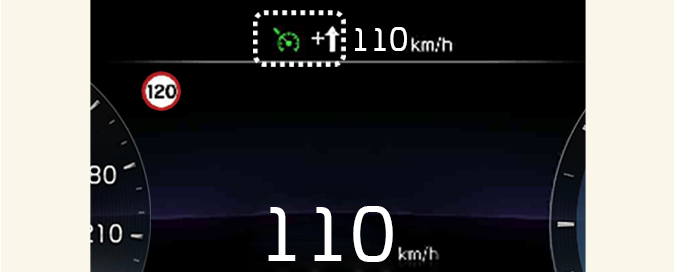Ако ограничението на скоростта на пътя се промени по време на работа с ръчна система за ограничение на скоростта или интелигентен круиз контрол (ако е оборудван), се показва стрелка в посока нагоре или надолу, за да информира водача, че зададената скорост трябва да се промени. В този момент водачът може да промени зададената скорост според ограничението на скоростта, като използва превключвателя „+“ или „-“ върху волана.