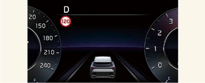 Интелигентният асистент за ограничение на скоростта ще предупреди и контролира автомобила чрез „Показване на ограничение на скоростта“, „Предупреждение за превишена скорост“ и „Промяна на зададената скорост“.