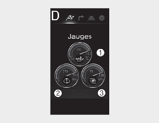 Ce mode affiche la température d'huile (1), l'indicateur de couple (2) et l'indicateur de suralimentation du turbo (3).