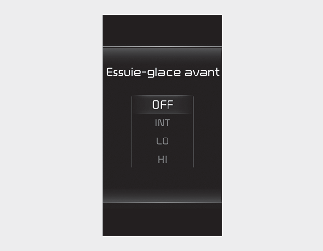 Vous pouvez activer ou désactiver la fonction de configuration de Essuie-glace/Lumières à partir du mode Réglages utilisateur sur l'écran LCD du combiné d'instruments ou les Réglages de l’écran du système d’infodivertissement.
