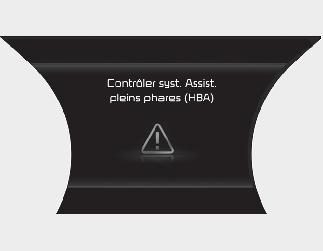 (Vérifier le système Assistant phare (HBA)) » apparaît et le voyant d'avertissement (