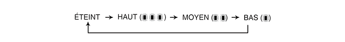 À chaque fois que vous appuyez sur le commutateur, le réglage de la température du siège est modifié comme suit :
