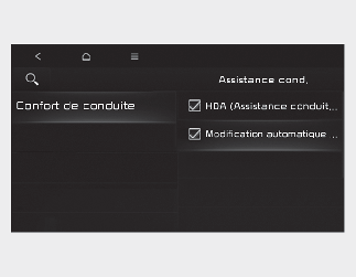 « Assistance à la conduite → Confort de conduite → Contrôle automatique de la vitesse sur autoroute » dans le menu « Paramètres → Véhicule » pour activer le régulateur de vitesse intelligent basé sur la navigation et désélectionnez-le pour désactiver la fonction.