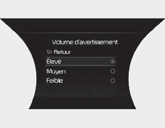 Si vous changez le volume sonore d’avertissement, le volume d’avertissement des autres fonctions d'assistance au conducteur peut changer.