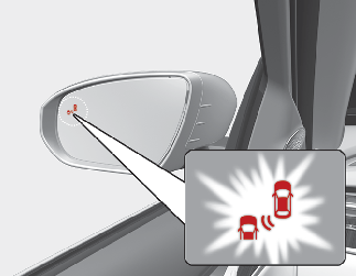To warning the driver of an approaching vehicle from the rear left/right side of your vehicle, the outside rearview mirror will blink and a warning will appear on the cluster. At the same time, an audible warning will sound. If Rear View Monitor is operating, a warning will also appear on the infotainment screen.