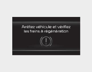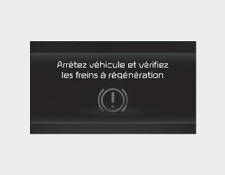 Ce message s’affiche lorsque les performances de freinage sont faibles ou que le frein à récupération ne fonctionne pas correctement en raison d’une défaillance du système de freinage.