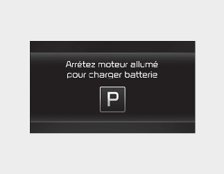 Ce message s’affiche pour informer le conducteur que la batterie 12V peut être déchargée si le bouton DÉMARRAGE/ARRÊT du moteur