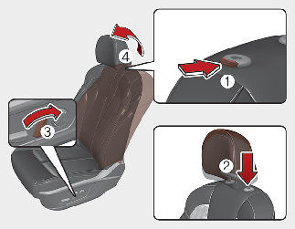 Si vous inclinez le dossier du siège vers l'avant avec l'appuie-tête et le coussin du siège relevés, l'appuie-tête peut entrer en contact avec le pare-soleil ou d'autres parties du véhicule.
