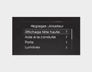 Dans ce mode, vous pouvez modifier les réglages du combiné d'instruments, des portières, des lampes, etc.