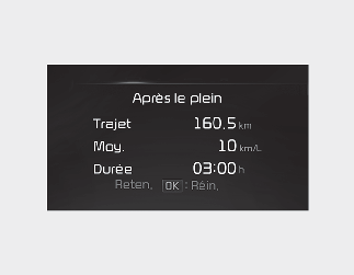 Si vous appuyez sur le bouton "OK" pendant plus d'une seconde après affichage de l'information depuis le dernier ravitaillement, les informations seront réinitialisées.