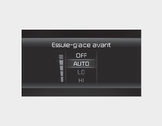 Vous pouvez activer ou désactiver la fonction d'affichage des essuie-glaces/éclairages à partir du mode Réglages utilisateur de l'écran LCD du bloc d'instruments.