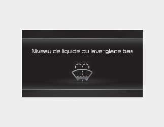 Ce message d'avertissement s'affiche si le niveau de liquide de lave-glace dans le réservoir est presque vide.