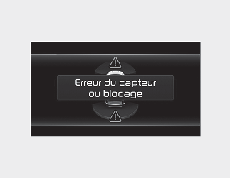Le message d’alerte « Parking sensor or blockage » (erreur ou blocage du capteur de stationnement) apparaît sur le tableau de bord.