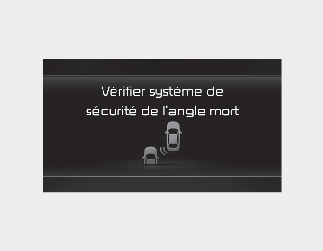 Lorsque le système « Blind-Spot Safety system » (sécurité des angles morts) ne fonctionne pas correctement, le message d’avertissement « Check Blind-Spot Safety System » (vérifiez le système de sécurité des angles morts) s’affichera sur le tableau de bord et le système sera automatiquement désactivé ou sa performance limitée. Faites vérifier le système par un concessionnaire Kia autorisé.