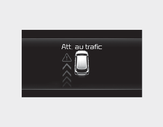 Lorsqu’un véhicule s’approchant par l’arrière est détecté au moment de l’ouverture de la portière, le message d’avertissement « Watch for traffic » (Attention à la circulation) apparaîtra sur le tableau de bord et un signal sonore retentira.