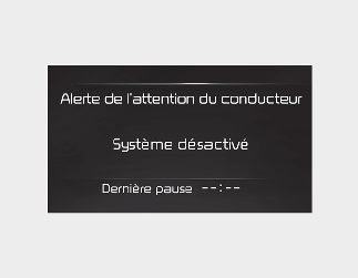 Lorsque le conducteur réinitialise l'avertissement d’attention du conducteur, le dernier temps de pause est défini sur 00:00 et le niveau d'attention du conducteur est défini sur « High » (Élevé).