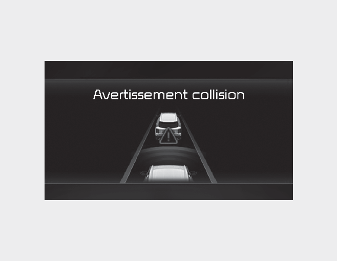Alors que le régulateur de vitesse intelligent est activé, quand le risque de collision avec le véhicule qui vous précède est élevé, le message d'avertissement « Collision Warning » (Avertissement de collision) apparaîtra sur le tableau de bord et un avertissement sonore retentira pour prévenir le conducteur. Soyez toujours attentif à la route et pendant la conduite et, si nécessaire, appuyez sur la pédale de frein pour ralentir afin de maintenir une distance de sécurité.