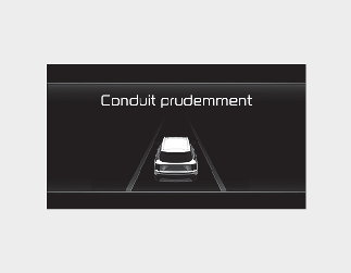 Lorsque le véhicule est immobilisé à la suite d’un freinage d’urgence, le message d’avertissement « Conduit prudemment » s’affiche sur le tableau de bord.