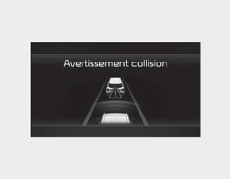 Pour avertir le conducteur d'une collision imminente, le message d’avertissement « Collision Warning » (Avertissement de collision imminente) s’affichera sur le tableau de bord, un signal sonore retentira et le volant vibrera.