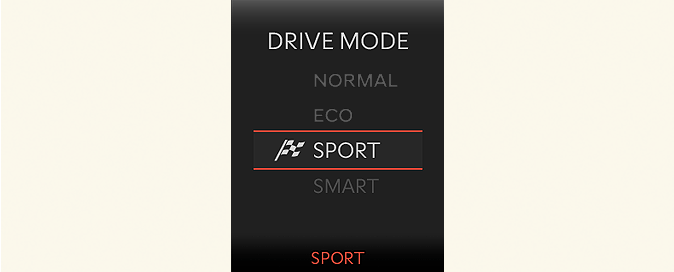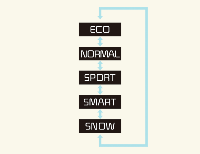 Le mode SMART sélectionne le mode de conduite approprié parmi ECO, NORMAL et SPORT en déterminant les habitudes de conduite du conducteur [c'est-à-dire, économique ou agressif (Sport)] à partir du maniement de la pédale de frein et du volant.