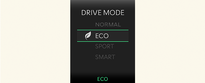 Le mode de conduite passe automatiquement au mode ECO après un certain temps, lorsque vous appuyez doucement sur la pédale d'accélérateur. (Votre conduite est alors considérée comme étant économique.)