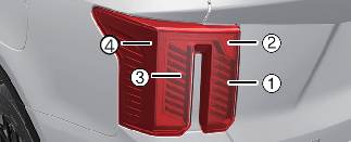 Si les clignotants arrière (2), le feu stop et le feu arrière (1), le feu arrière (3) et le feu de gabarit (4) ne fonctionnent pas, faites vérifier votre véhicule par un concessionnaire Kia agréé.